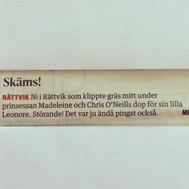 Om du bor i Rättvik i Dalarna så ska du nog passa dig jävligt noga innan du startar din gräsklippare under ett prinsess-bröllop. Likaså under Pingst-helgen.