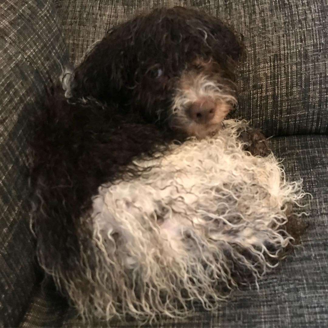 Oh boy! It was snow everywhere today. And dad took the easy way and gave me a shower after the long walk. I won. #maclagotto #lagotto #lagottosweden #lagottoromagnolo #pappajagvillhaenitalienare