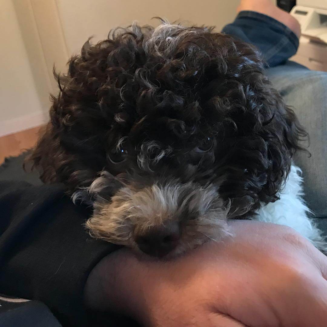 Oh. I know I’m not allowed chewing on dad. Very aware! #maclagotto #lagotto #lagottosweden #lagottoromagnolo #pappajagvillhaenitalienare