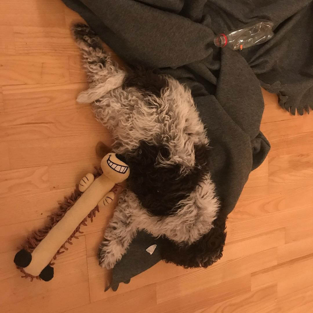 Sleeping. Frog-style! #lagottoromagnolo #lagottosweden #lagotto #maclagotto #dog #dogs #dogsofinstagram Follow Mac on Instagram!