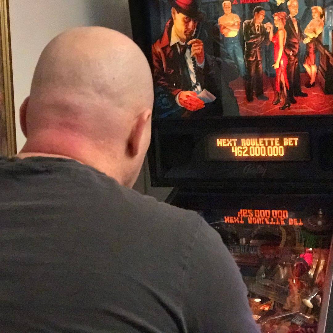 Tjocka hårlösa män spelar flipper. @copilopen bjöd på en öl.